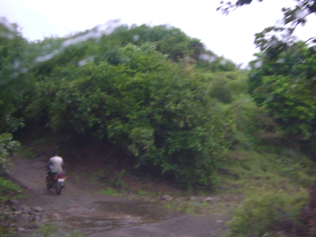 પાછળથી એક બાઈક આવ્યું. તેને જવા અમે ગાડીના દરવાજા બંધ કરી દીધા (ફોટામાં જોઈ શક્શો કે રસ્તો એક ગાડી જાય એટલો માંડ પહોળો છે, અને કાદવ તો પાંચ કિલોમીટરમાં એકેય તસુભાર ઓછું નથી) તે ભાઈ અમને ઉભેલા જોઈ ઉભા રહ્યા. “શું થયું છે?” તેમણે પૂછ્યું. અમે તેમને વૃતાંત હજી કહીએ એ પહેલા તો ગાડીના ટાયરે પાડેલા નિશાન પરથી તે બધુ સમજી ગયા. “નીકળશે?” તેમણે ડ્રાઈવરને પૂછ્યું. પણ અમારો ડ્રાઈવર તો નક્કી કરીને નીકળ્યો હતો કે નહીં જ નીકળે, “ચાલો બેસો ગાડીમાં, તું ય બેસી જા પાછળ” તેમણે અમને અને ડ્રાઈવરને સૂચના આપી, તેમણે તેમની પાછળ બેઠેલા તેમના મિત્રને કહ્યું “તું બાઈક લઈને આગળ જા અને જ્યાં બાઈક ફસાય, ઉભો રહી થોડો પાછળ અમને ચેતવજે” …… તેમણે ગાડીનું સ્ટીયરીંગ લીધું.