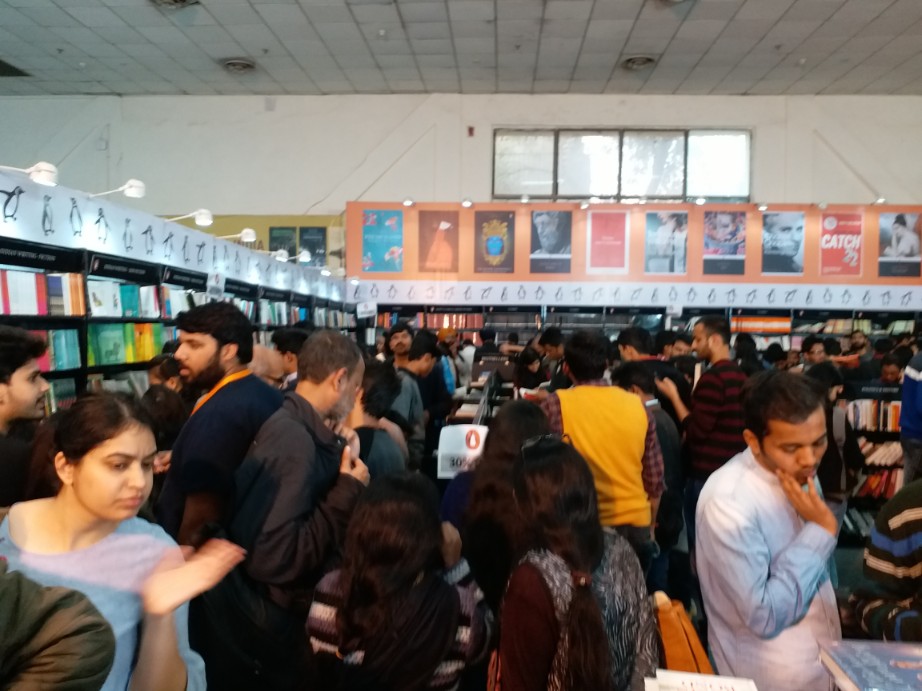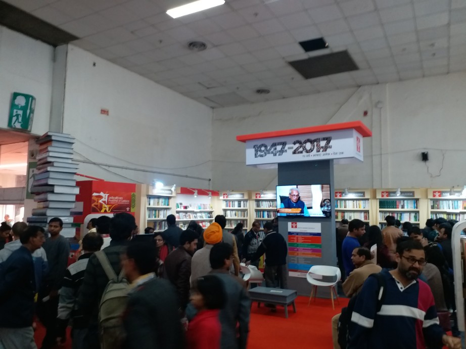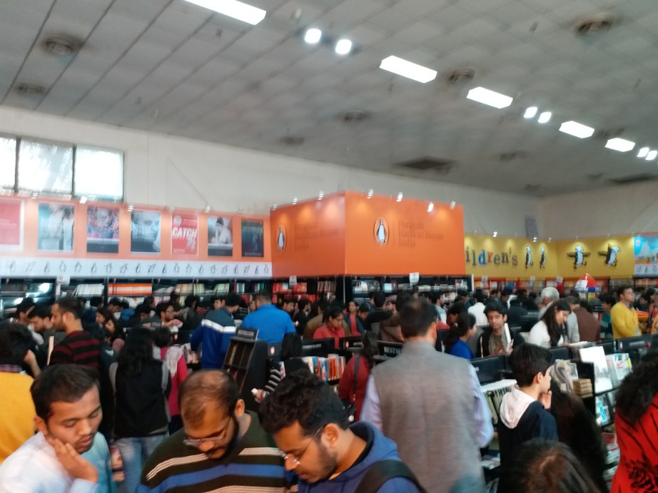 જોતજોતામાં આ જ ખંડમાં ત્રણ કલાક વીતી ગયા, પગ દુઃખવા લાગ્યા અને પેટમાં પણ ઉંદર દોડવા લાગ્યા. હૉલની બહાર આવીને સરસ મજાના છોલેભટૂરેને ન્યાય આપ્યો. પાસે જ મળતું તાજુ ફ્રૂટ જ્યૂસ પીધું અને પછી લાવ્યો સામેના હૉલમાં પ્રવેશ માટેની લાંબી લાઈનમાં, જે અંગ્રેજી પ્રકાશકોનો હૉલ હતો. રસ્કિન બોન્ડના પુસ્તકનું વિમોચન ચાલી રહેલું, એટલે પેંગ્વિનના મસમોટા સ્ટૉલ અને આસપાસની બધી જગ્યા લોકોથી ભરાઈ ગયેલી છતાંય અંદર આવનારાઓની સંખ્યા ઘટવાને બદલે વધતી જ રહી. પ્રવેશતાં જ નેશનલ બુક ટ્રસ્ટનો ખૂબ વિશાળ સ્ટૉલ હતો. અનેકવિધ પુસ્તકો અને વિવિધ વિષયોમાં વહેંચાયેલા સ્ટૉલમાં પુસ્તકોનું વર્ગીકરણ સરસ રીતે કરીને મૂકાયેલું, વિષયવાર પુસ્તકોની ગોઠવણી પણ સરસ હતી, અને લોકોની ભીડ પણ ભારે હતી. બાજુમાં જ પેંગ્વિનના સ્ટૉલમાં ૩૦% જેવું ડિસ્કાઉન્ટ અને રસ્કિન બોન્ડની હાજરી જ એની પરિસ્થિતિ સમજાવવા પૂરતી હતી. પાઉલો કોએલ્હોના પુસ્તકોનો સેટ અહીં સૌથી મોટું આકર્ષણનું કેન્દ્ર હતો. અઁગ્રેજીમાં ખૂબ વેચાઈ રહેલા પુસ્તકો જે લગભગ બધા જ લોકો ખરીદી રહ્યાં હતા, એ મુખ્યત્વે હતા,